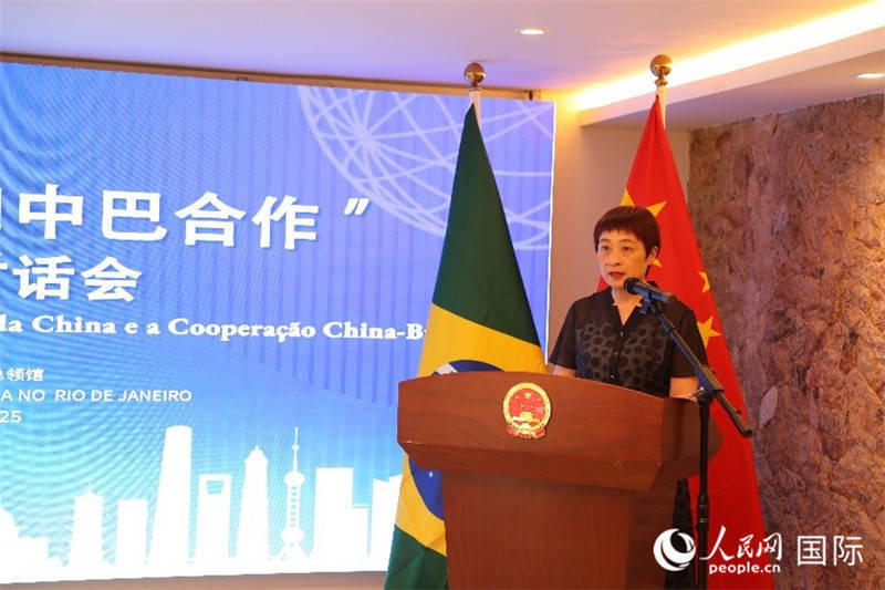 中国驻里约热内卢总领事田敏在媒体对话会上致辞。东说念主民网实习生 侯天泽摄